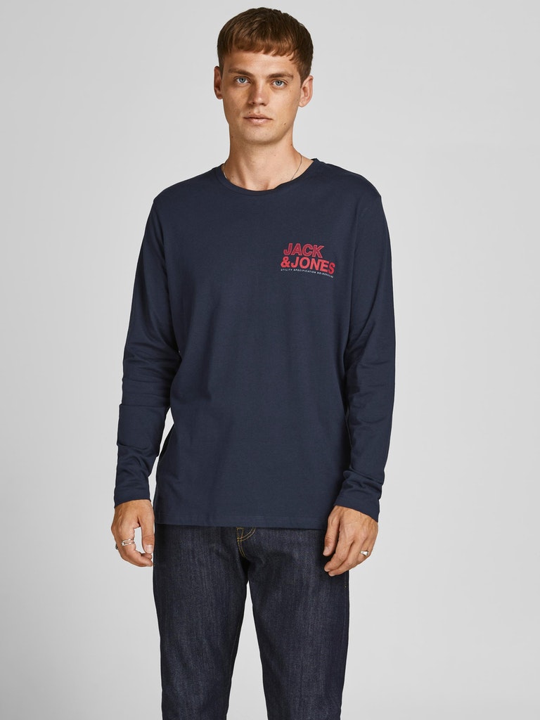 تى شيرت فلوكى أكمام طويلة جاك اند جونز لأطلالة عصرية.
